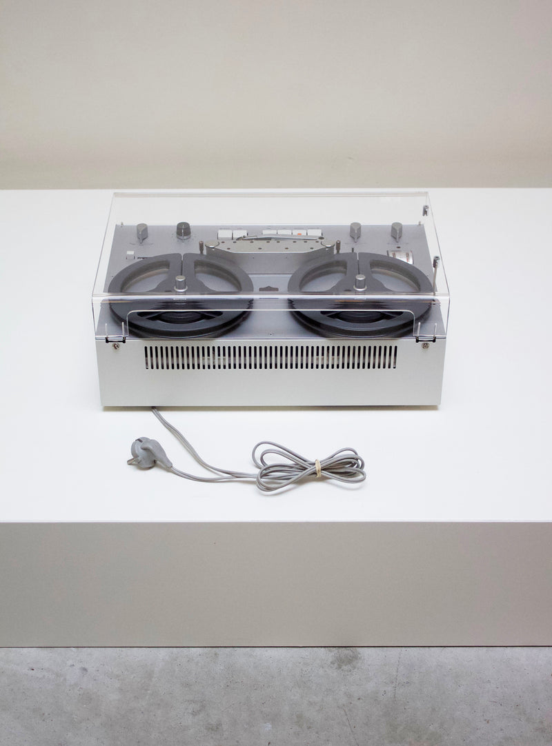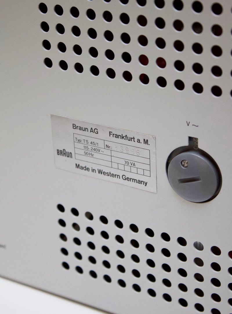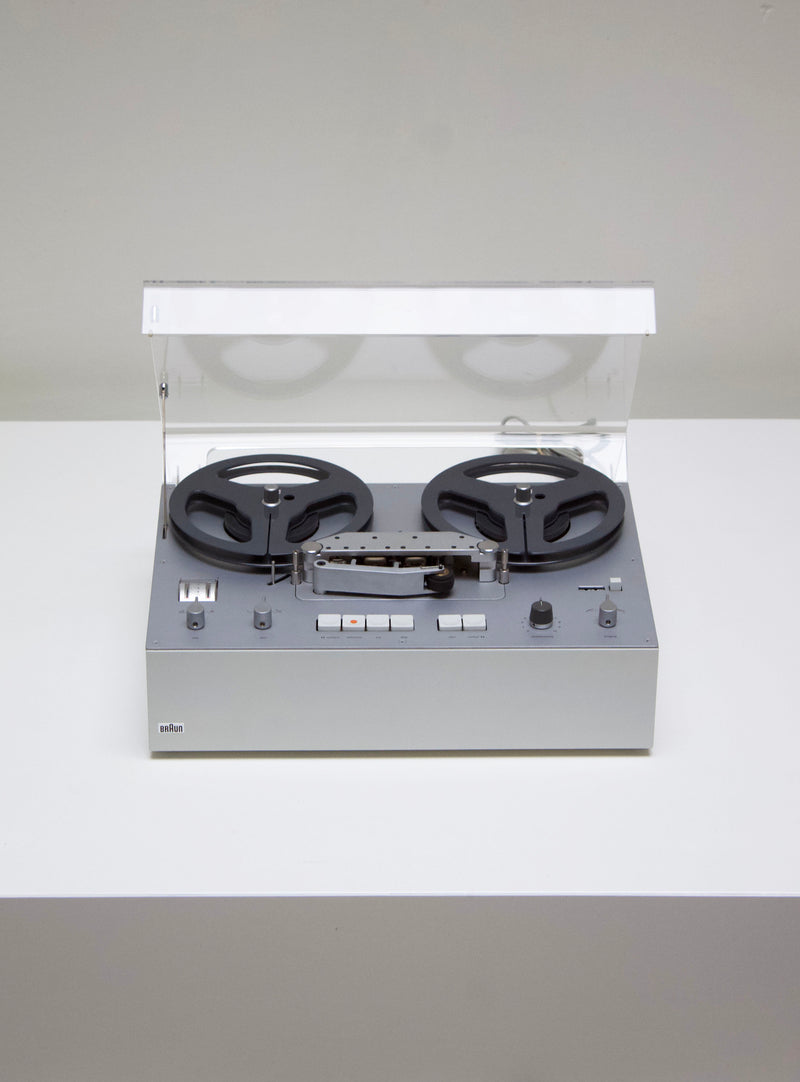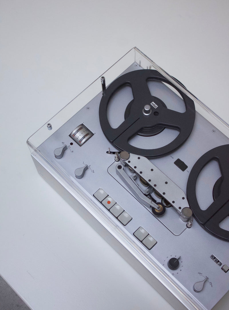 The TG 60 Tape Recorder was designed by Dieter Rams and the technical implementation of the requirements was done by engineer Wolfgang Hasselbach. It’s equipped with 3 Pabst electric motors and can easily be operated. It is specially calibrated for the Braun TB 631 tape. The 18 cm reel can play back about 45 minutes of stereo recordings at a speed of 19cm/s. Three separate half-track head for erasing, recoding and playback allow back-tape control of the recording, as it was only common in highly professional studio tape recordings from Revox and Studer at that time.