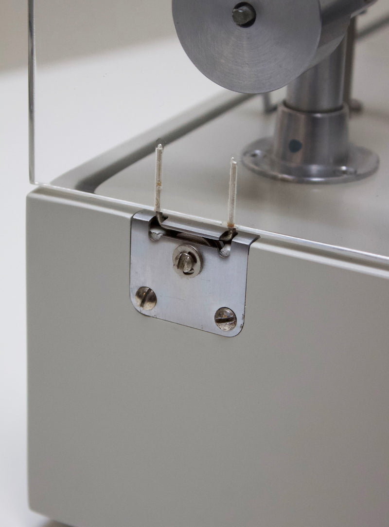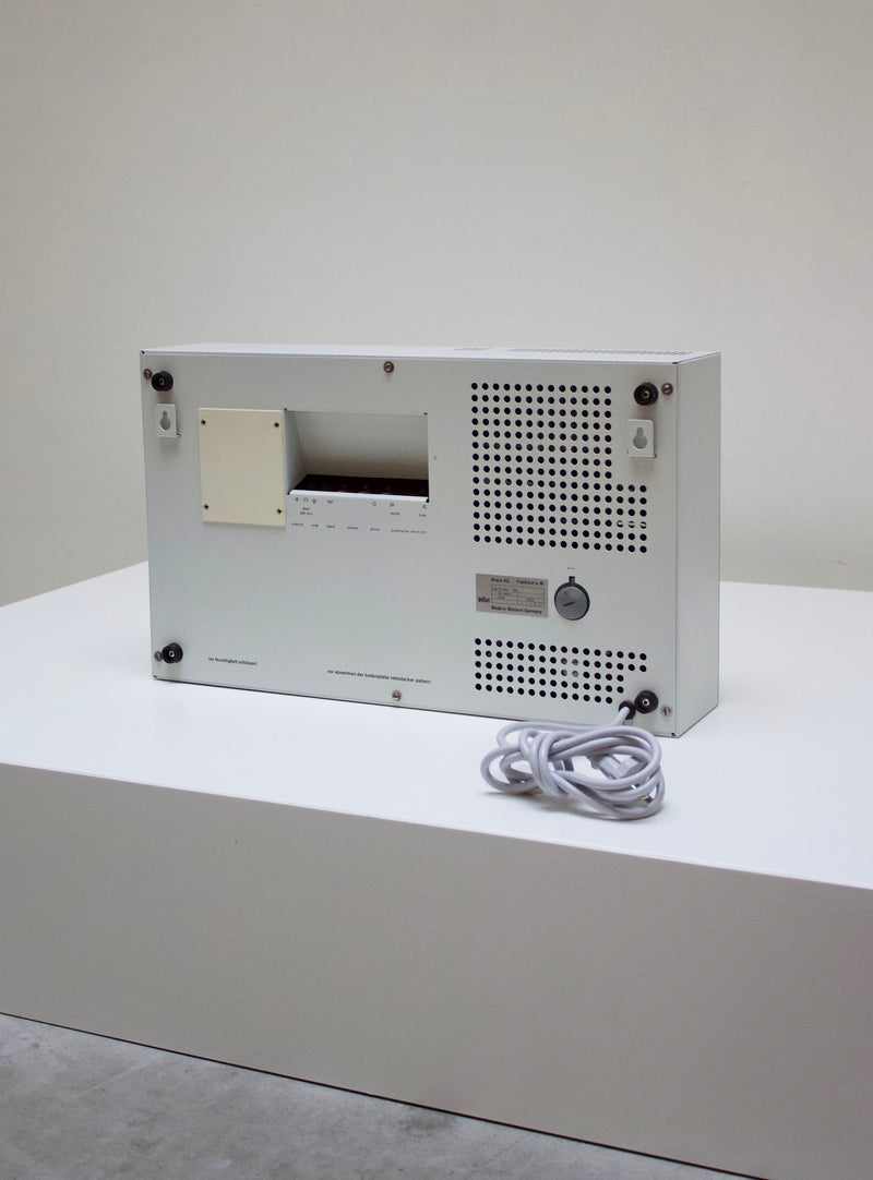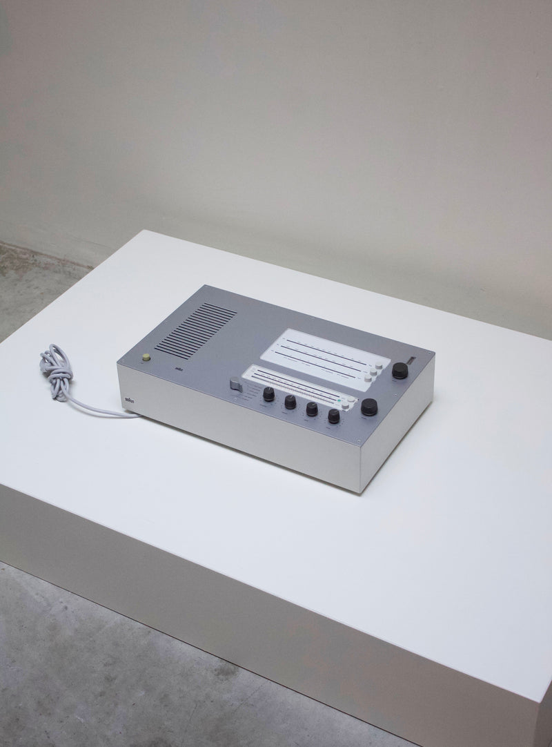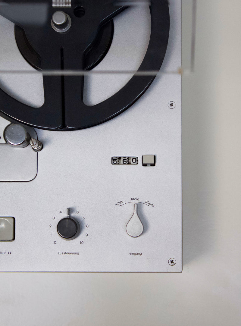The TG 60 Tape Recorder was designed by Dieter Rams and the technical implementation of the requirements was done by engineer Wolfgang Hasselbach. It’s equipped with 3 Pabst electric motors and can easily be operated. It is specially calibrated for the Braun TB 631 tape. The 18 cm reel can play back about 45 minutes of stereo recordings at a speed of 19cm/s. Three separate half-track head for erasing, recoding and playback allow back-tape control of the recording, as it was only common in highly professional studio tape recordings from Revox and Studer at that time.