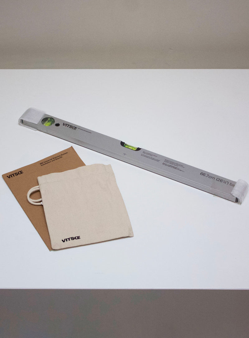 The Braun wall-mounted system is one of the most sought-after Hi-Fi systems from the 1960s. The iconic set is designed by Dieter Rams together with Braun and Vitsoe. It's one of his most famous work and the set features a TS 45 amplifier and radio, TG 60 tape recorder, L 470 speakers, PCS 5 turntable with a Vitsoe shelving unit with two shelves. One of the shelves has the rare vinyl holders in them as well. The PCS 5 turntable is also held by specially made brackets, this is extremely rare as most combinations now have the turntable on one of the two shelves instead of in the specific brackets.