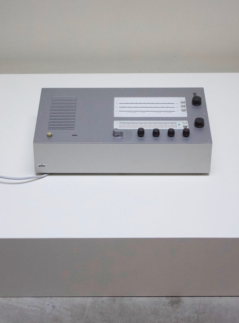 The Braun Hi-Fi wall unit is very desired by enthusiastic Braun collectors. This absolute rarity is rarely offered as a complete system, and when it is, it's rarely in this pristine condition. This wall unit has been completely checked and serviced by a technician. The set comes with original new Vitsoe spirit level and a new DPR 26 double play tape.