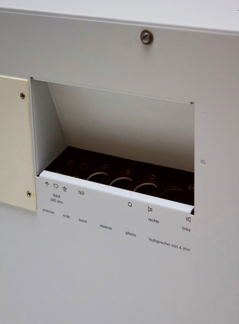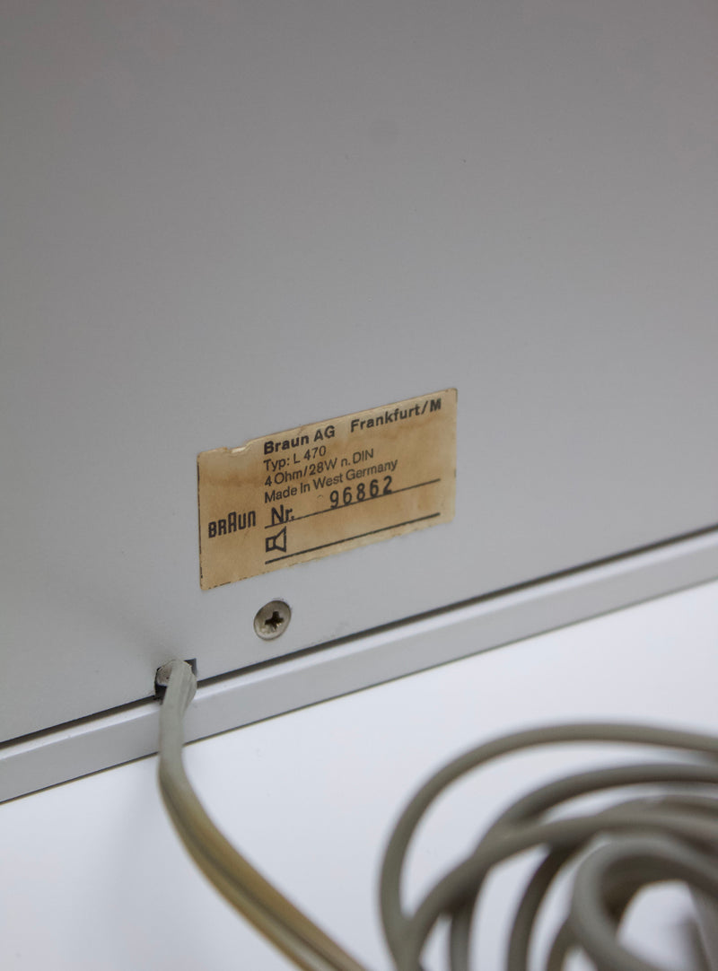 The L 470 speakers were specifically made for the wall system and are the follow-up model of the L 450 speakers in 1969. The L 470 where provided with a dome for the high-frequency range and otherwise the same dimensions and can therefore also be used for the wall system. These speakers were designed to match the TS 45 and the Audio 2 compact system. They were made in white, graphite and walnut veneer. They are equipped with a 5.1 inch woofer and a 1.3 inch high range loudspeaker. Transition frequency at 1500 Hz, power rating 28 watt at 4 Ohm, the frequency range goes from 33-25000 Hz.